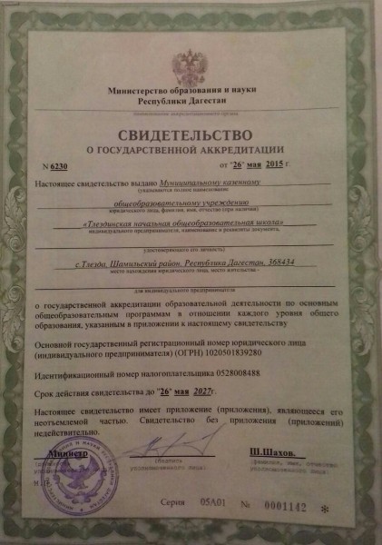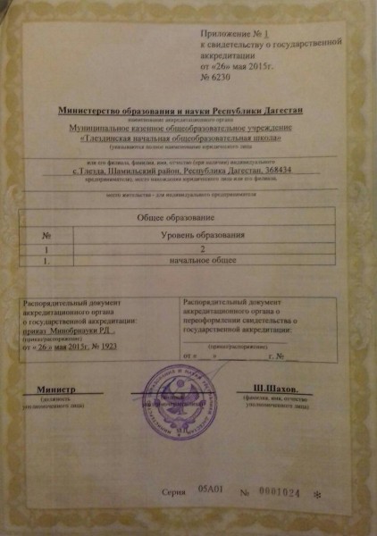 | Адрес местонахождения образовательной организации* | 368434, РД, Шамильский район, с.Тлезда |